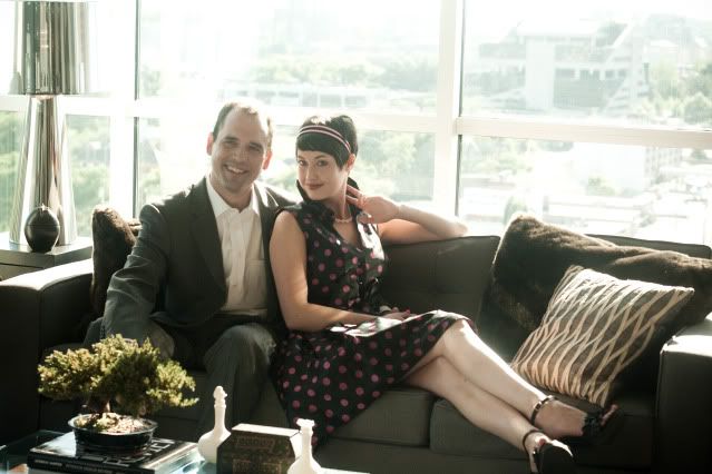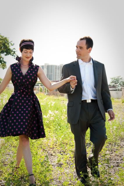 Even with all the cameras they managed to be completely good natured, natural and easy to be with. When we met up, I couldn't believe how adorable they were. He was sharp and classy, she, a cute mix of Marilyn Monroe and Betty Boop. Can't get much more fun. :)